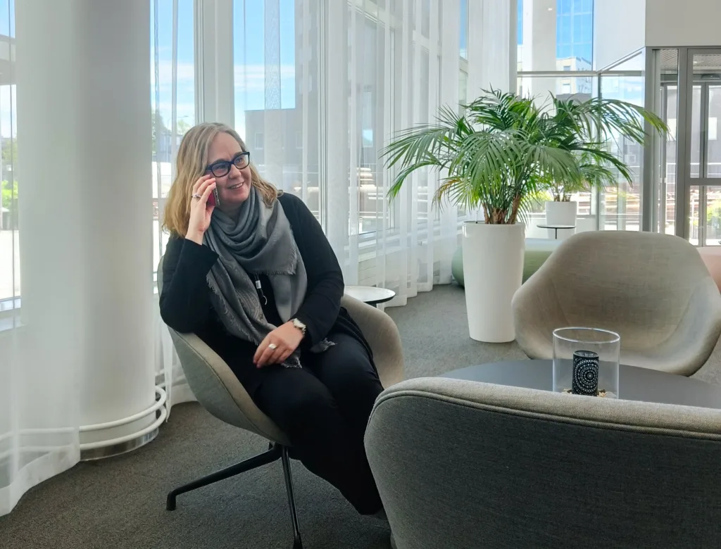 Talokeskuksella on päässyt tekemään monipuolisia suunnittelutöitä ja työ on itsenäistä, mikä on Marjolle tärkeä plussa omassa työssä. Hankkeita on päässyt tekemään laajalla skaalalla, mikä on melko harvinaista, sillä yleensä keskitytään rajatumpiin osa-alueisiin. Tämän Marjo listaa Talokeskuksen vahvuudeksi. Myös kaikkien suunnittelualojen löytyminen saman katon alta on olennainen etu, sillä apu löytyy aina läheltä ja hiljaista tietoa siirtyy luontevasti.